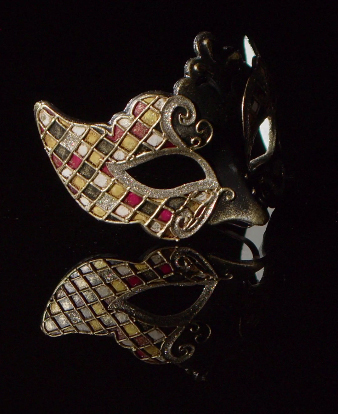 This Venetian Columbine Harlequin mask is a refined decorative object inspired by the great tradition of the Venice Carnival. Crafted from high-quality plastic, it combines lightness and durability with a richly detailed aesthetic, making it ideal for both wearing and adorning.